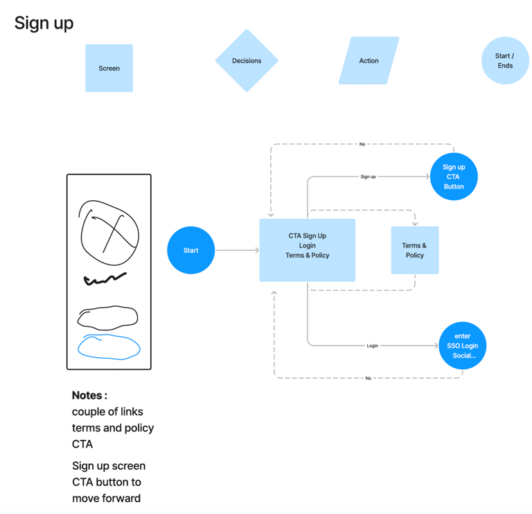Choosing the right design method will set the tone of the entire design process. I map out a flow before doing any actual design work this helps me understand the user journey better. I use a picture of a linear sequence of steps that a user will walk through when performing an assigned task. Weapon on choice Ipad and Pencil.
