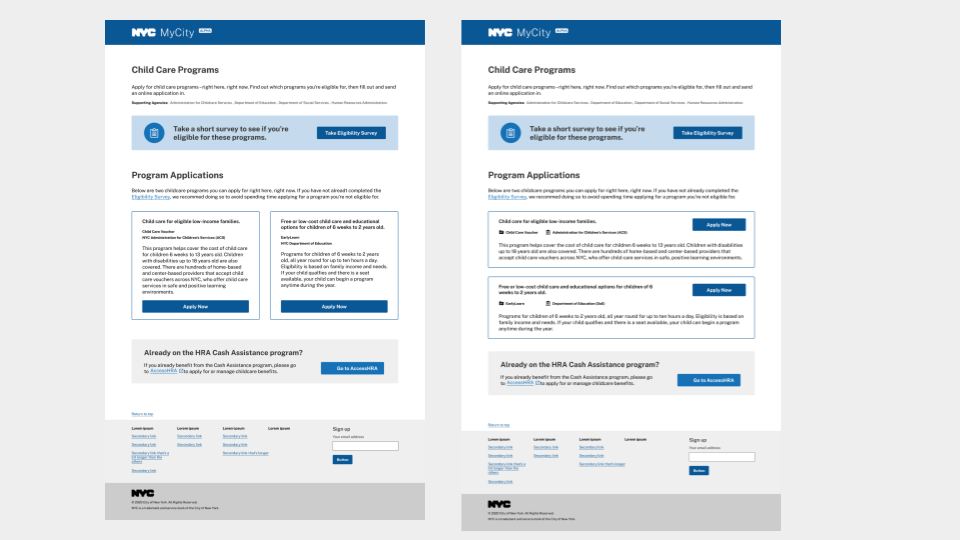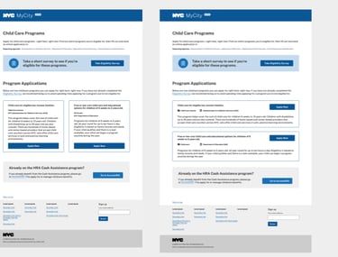 Rounds of usability testing. I was confident that this design was going to improve the user experience for our New Yorkers applying online for childcare services because the last round of testing showed a 20% increase in application completion
