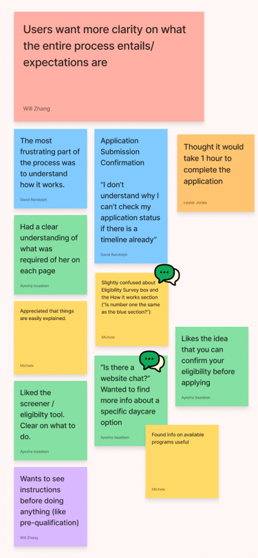 After interviewing and observing participants, and listening to their thoughts, we review the feedback notes and videos. Next, we decide how to go forward
