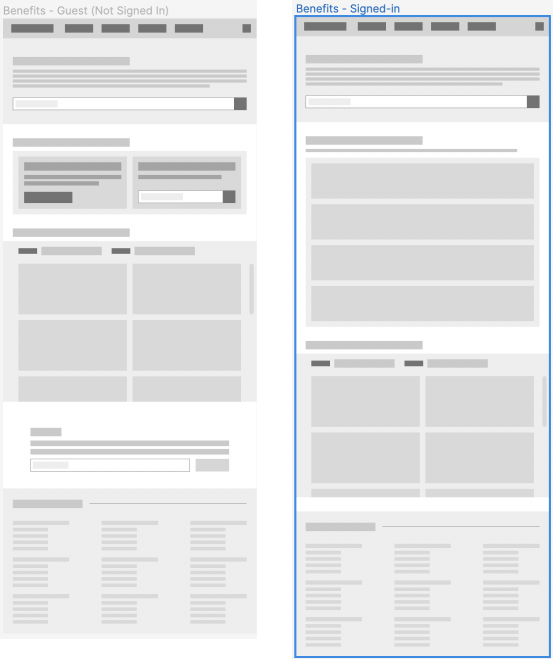 Purpose: Get users to sign up for an account so they can see personalized benefits and manage any active benefits they’re using